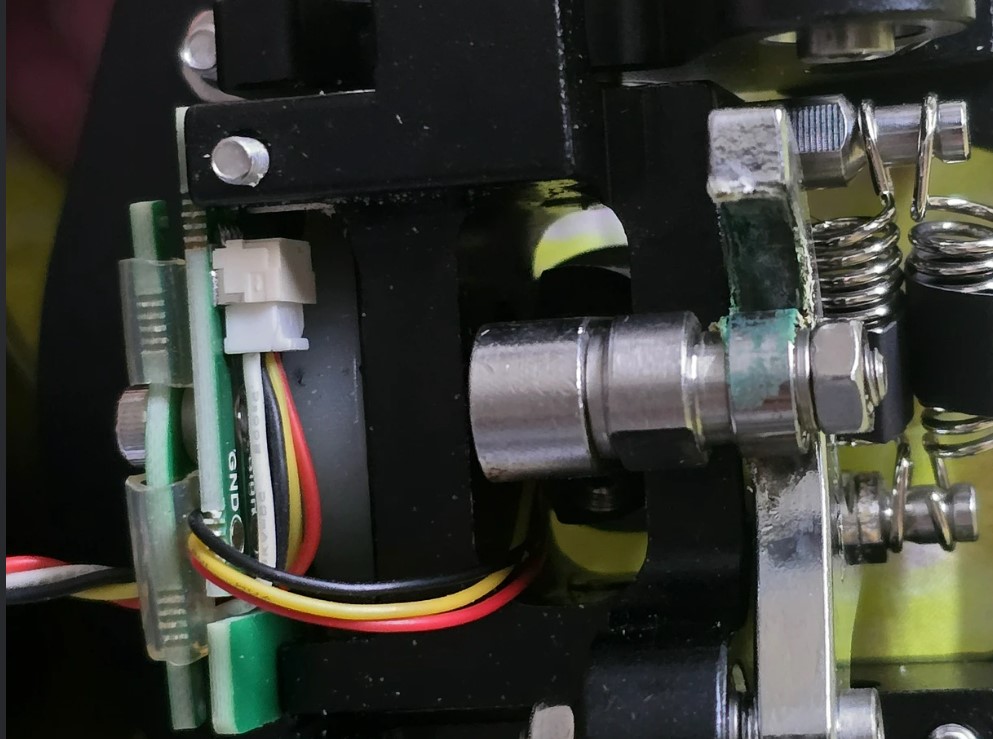 First, two LEDs on both boards in the base should be lit - check this. If the Y-axis board is not lit - check the cable connecting it to the X-axis board and the reliability of the connection in the connectors. The magnets are in the center of the damper disks of both axes, they can be covered with a sticker. When removing the main board in the base, remember the location of the washers on the screws (if any), so that you can reassemble everything correctly later. It is better to take photos of the process.
