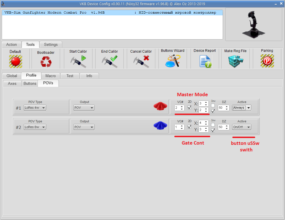 First of all, i got rid of the axis for the MasterMode - i didnt use them at all. So my Gate-cont (i use this for Radar-Slew) is now on axis 3&4.