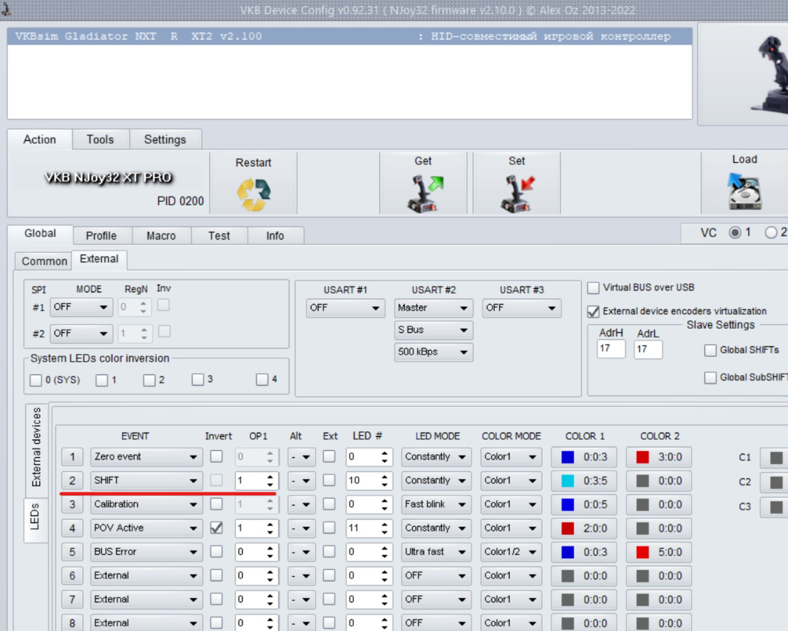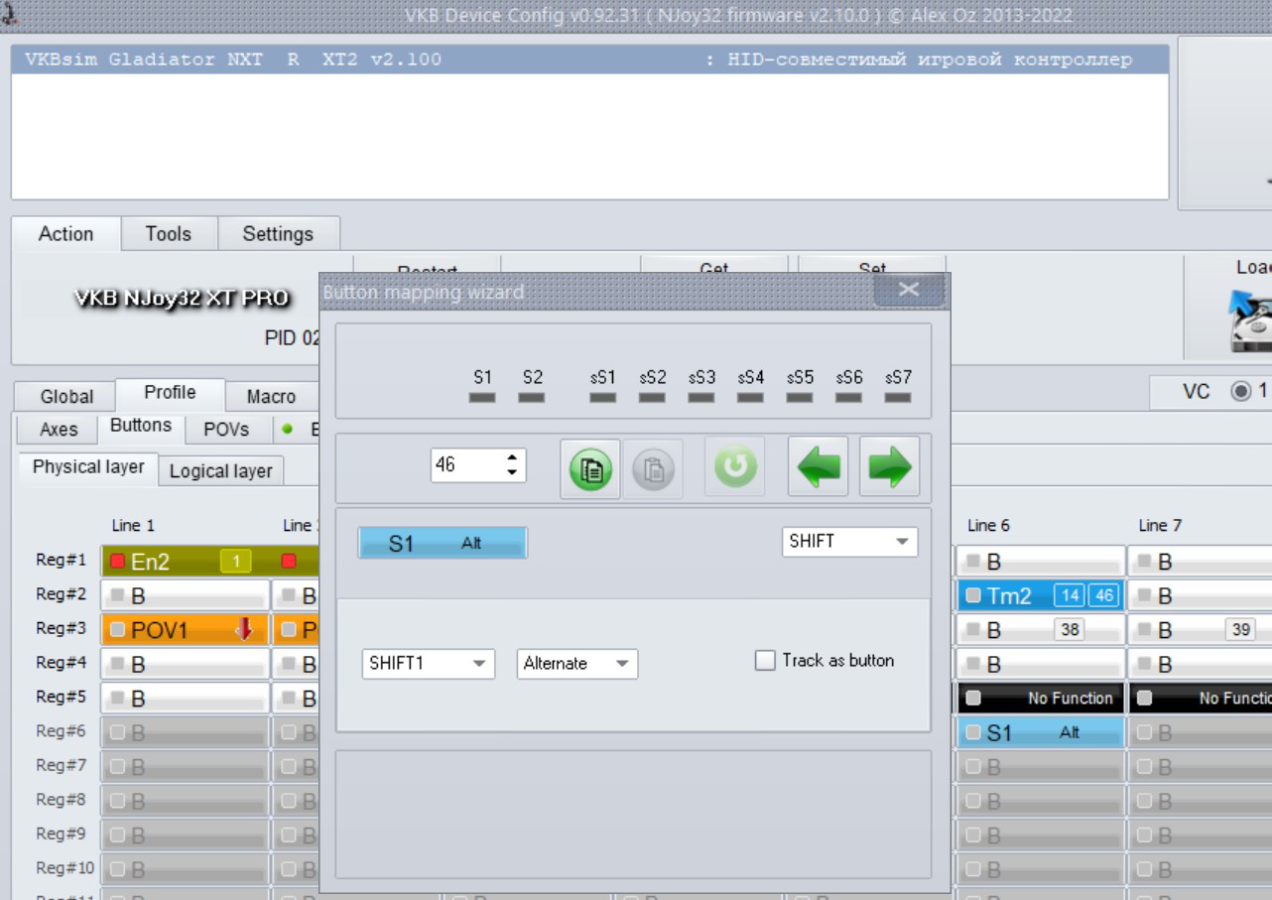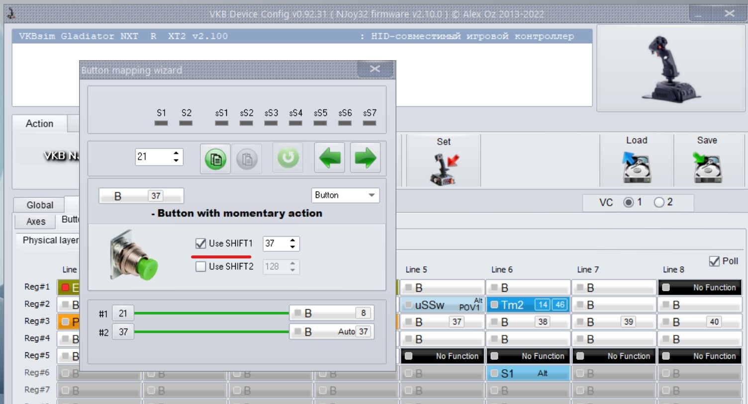 4. configure the buttons of the hut to work with Shift1 (successively)
