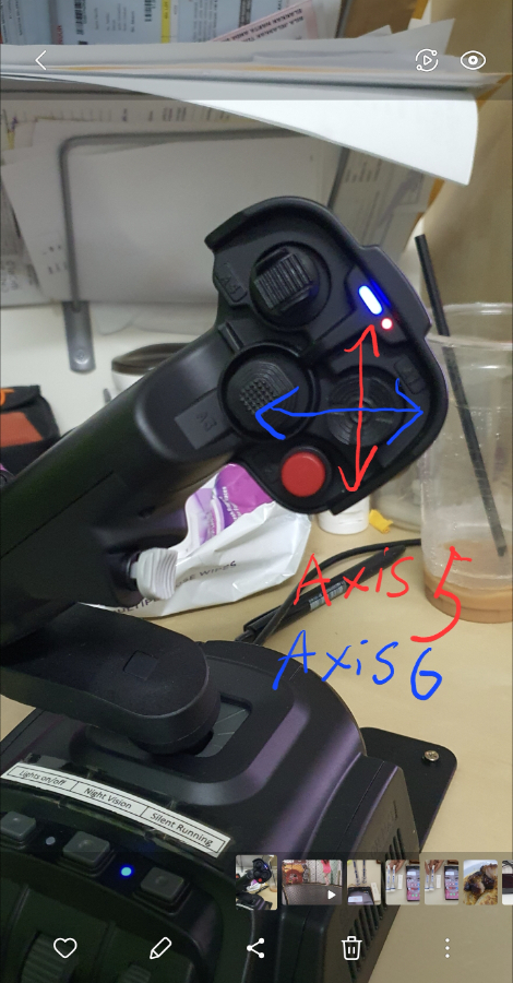 Seeing that the stick is now kinda angled sideway, what used to be down is now more or less left. So I have mapped thrust left to mini stick down.