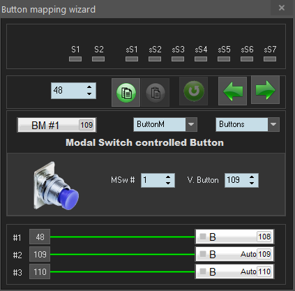Step 3: And finally Button 48 uses that Modal switch to adress 3 different Logical Buttons: