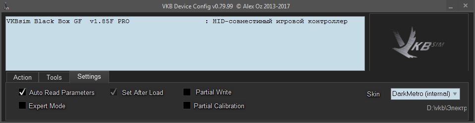 - Open the "Settings" tab and click on the "Expert Mode" checkbox (no longer needed with VKBdevCfg v0_81_83)