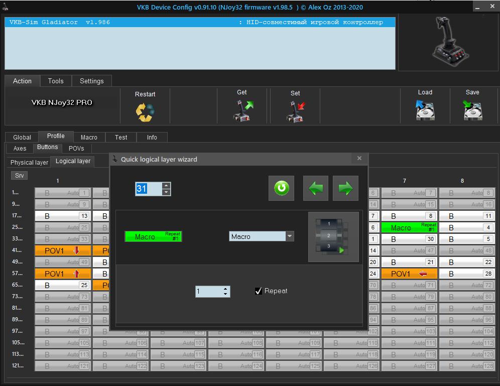 3. Pressed A1 physical Gladiator button (not holding it, just a regular click)