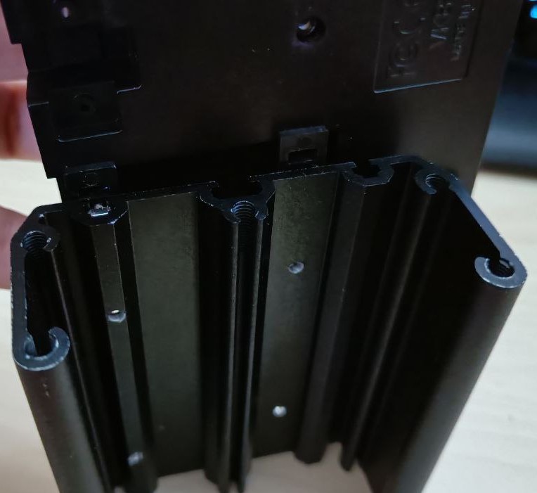 We reassemble the cover on the GNX module and screw the module to the bracket with screws of the correct length. I seem to remember that I used M3x25 for the highest part and M3x20 for the other two holes.