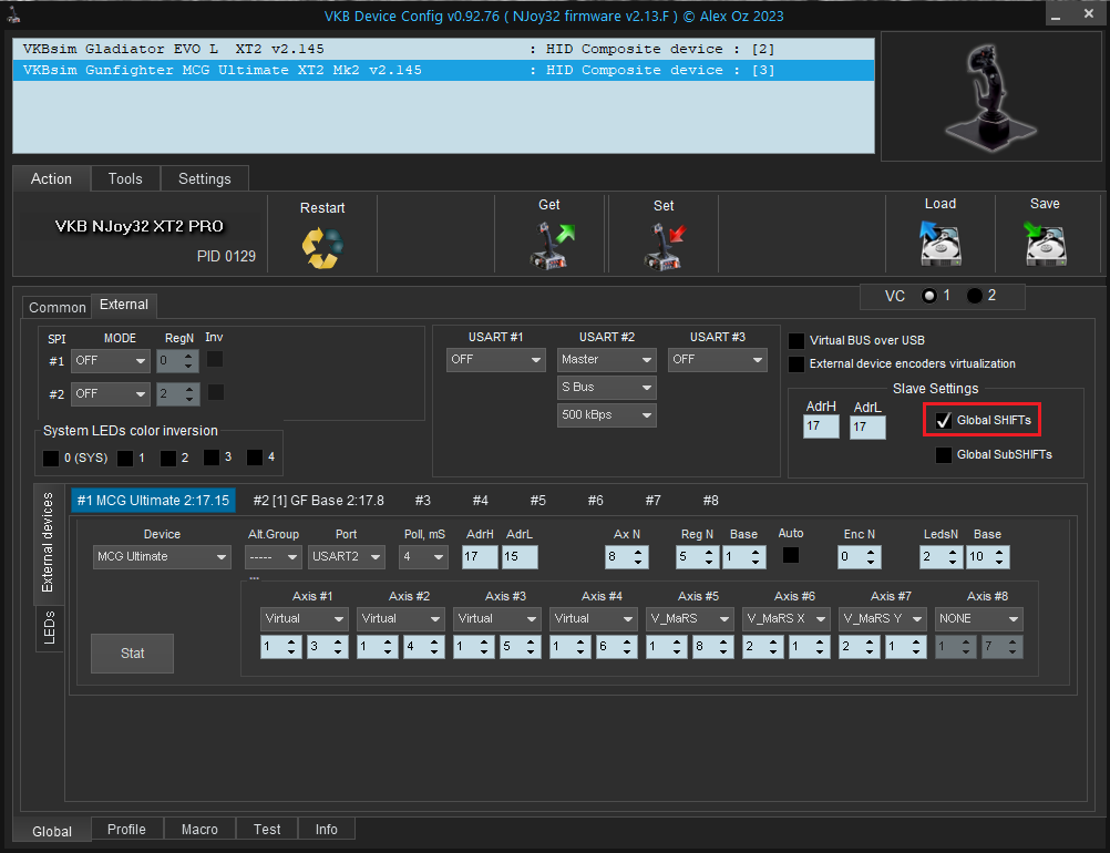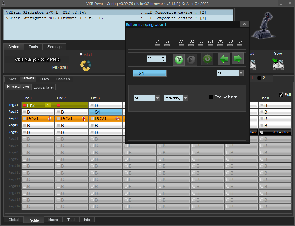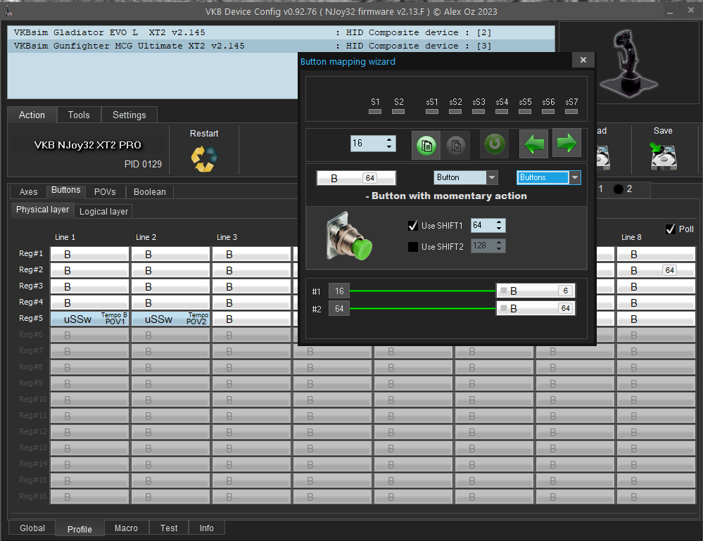 Remember that to send SHIFT state from one VKB device to another, Z-Link must be running in the background and "START" button pressed.