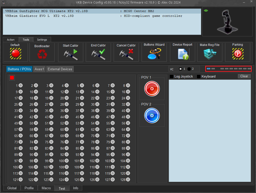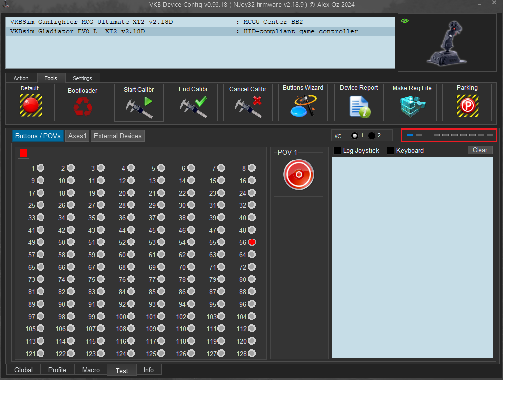 • You can check this by going to the Test tab of VKBDevCfg.