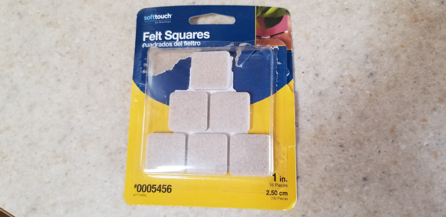 The felt started life as a floor protector intended for the leg of a chair and was purchased at a big box store. I used a Dremel tool and sand paper to grind it to the right dimension. So far the stick on glue that came with it is holding up. If it fails I plan to use some 5 minute epoxy on it.