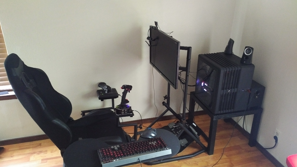I have since updated it a tad, by replacing the CH Pro Throttle with a Thrustmaster Warthog Throttle (see pic); waiting impatiently for the opportunity to order a TM Warthog VKB Adapter.
