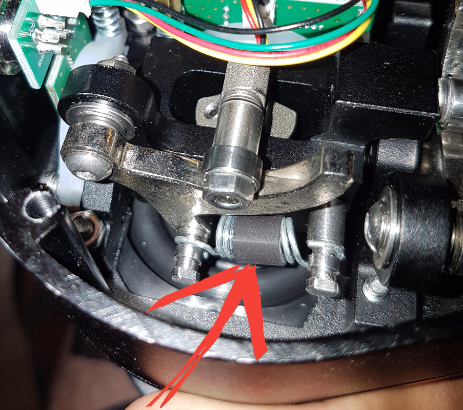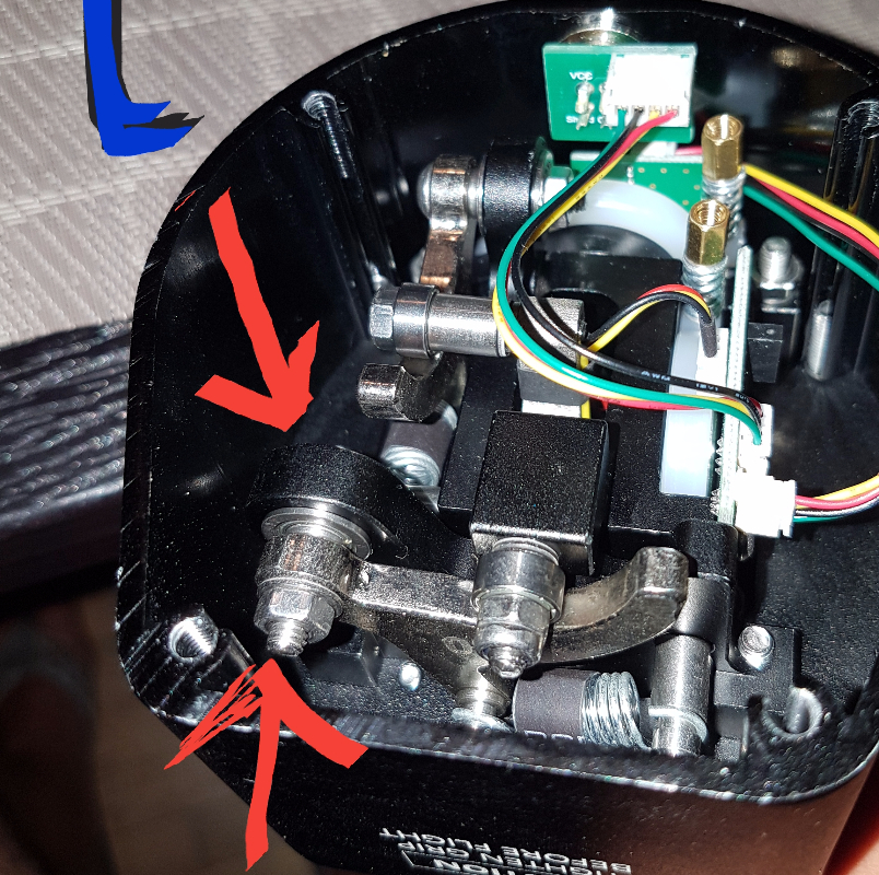 Took out the first bolt underneath the dust cap, turns out it was just screwed into a nut the other side, not into the gimbal unit, so I now have no way to screw it back in.