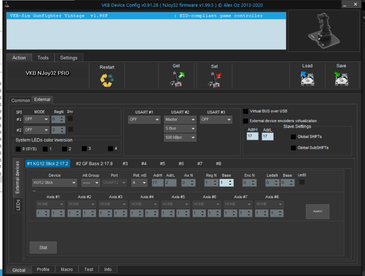 With the NG firmware (multidevice) when plug the usb the blackbox flashes red, and the device is seen as VKB-SIM Gunfighter Modern Combat Pro NG v1.990 and no buttons from the K12 will work and the black box will keep to flash red.