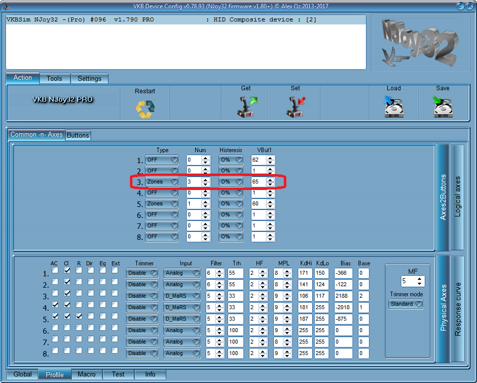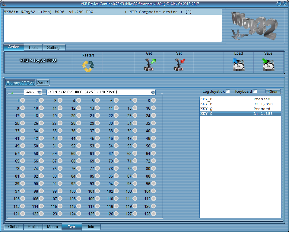 Может стоит обновить прошивку для начала? Брать из паровозной пакетный файл. Не забыть прописать User=Developer в секцию [User]. Ну и в [Common] Test All DI Joysticks=1. Крайний PDF тут.