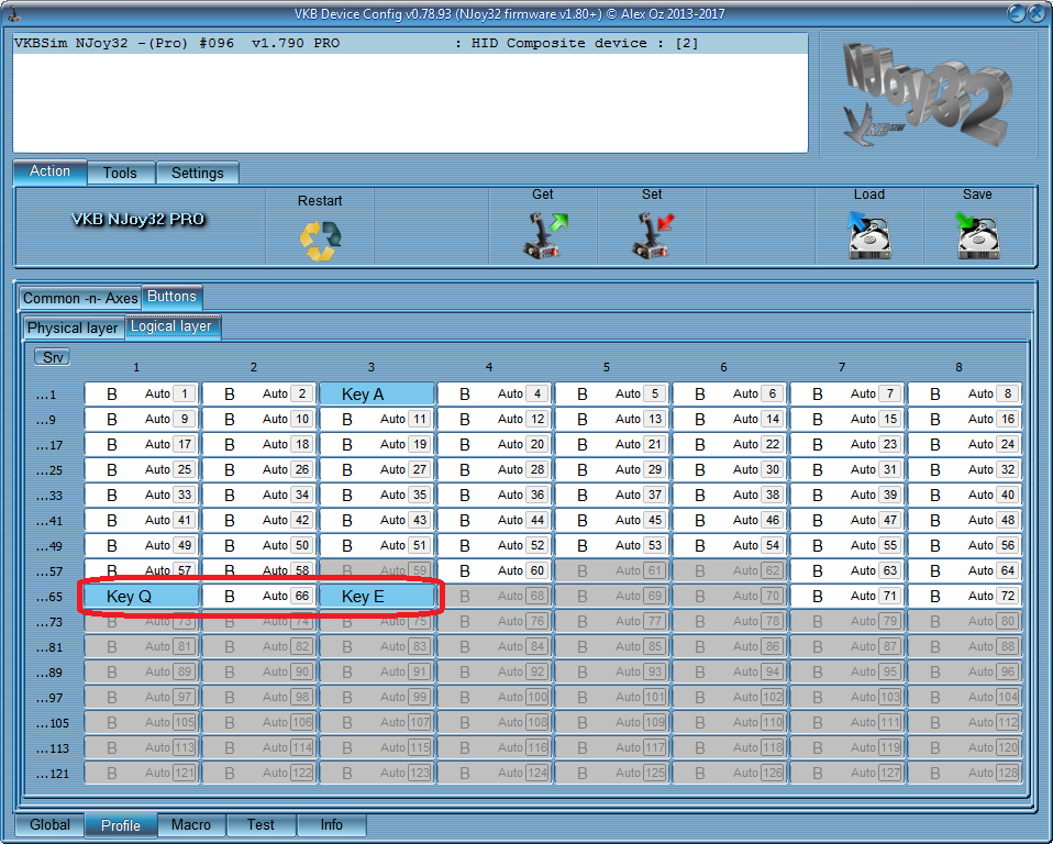 Но что интересно, был прошит крайней для Njoy32 (1.80-B) и мне не удалось повесить клавиши клавиатуры не то, что на кн.65-67, а и на любую другую кнопку (в примере на 3).