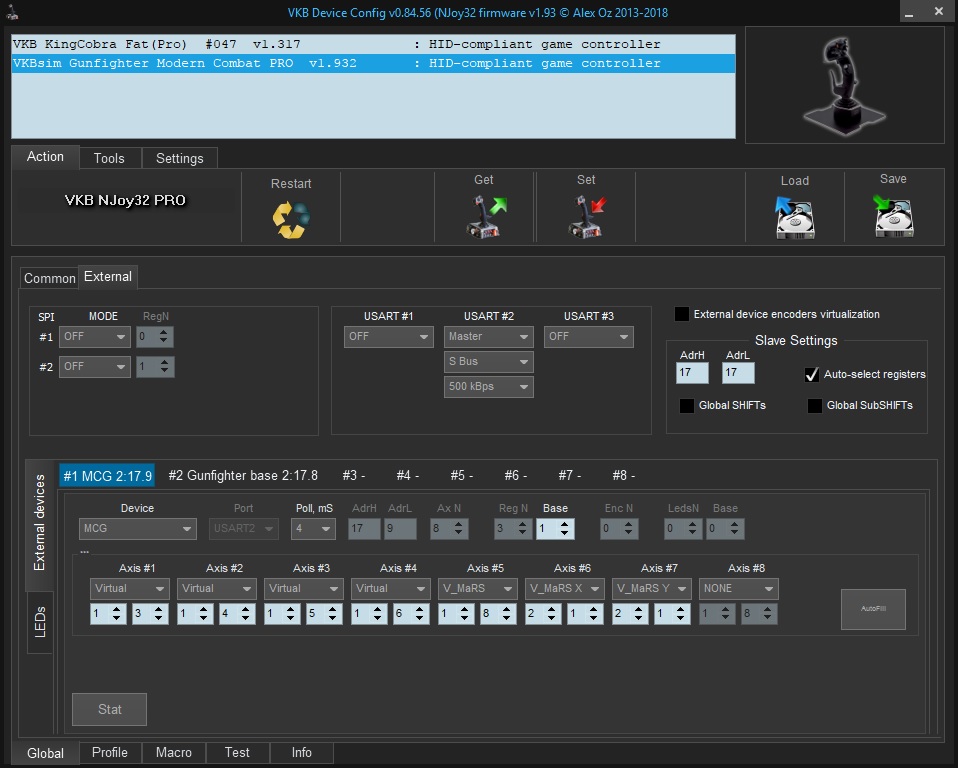 Настройки MCG - самы базовые. Только режим министика переключил от дефолтного: чтоб генерил не оси, а нажатие кнопок. В DCS, даже не знаю, какие настройки показать... Вроде всё - то же самое, что было и пять, и десять лет назад.