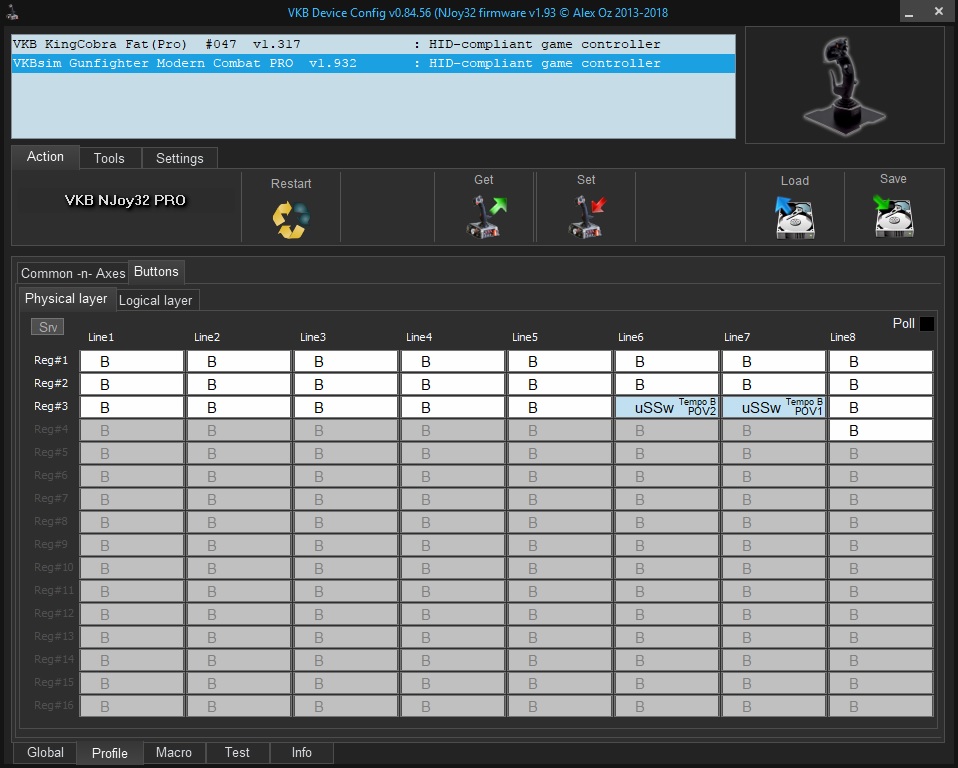 Оси GunFighter - работаю нормально. А кнопки - застревают в каком-то состоянии (верхний скрин). Лечится - перезагрузкой Ганфайтера (нижний скрин).