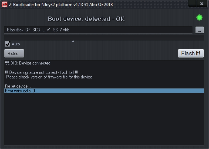 Попробовал на другом компьютере , сделал hardreset https://ibb.co/Sn8RkYb , попробовал прошить , не прошивает. Пишет то же сообщение - неверная сигнатура.