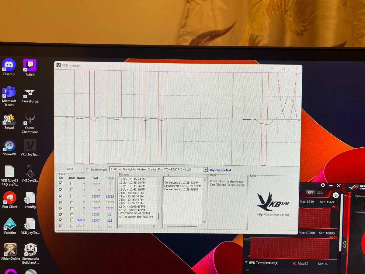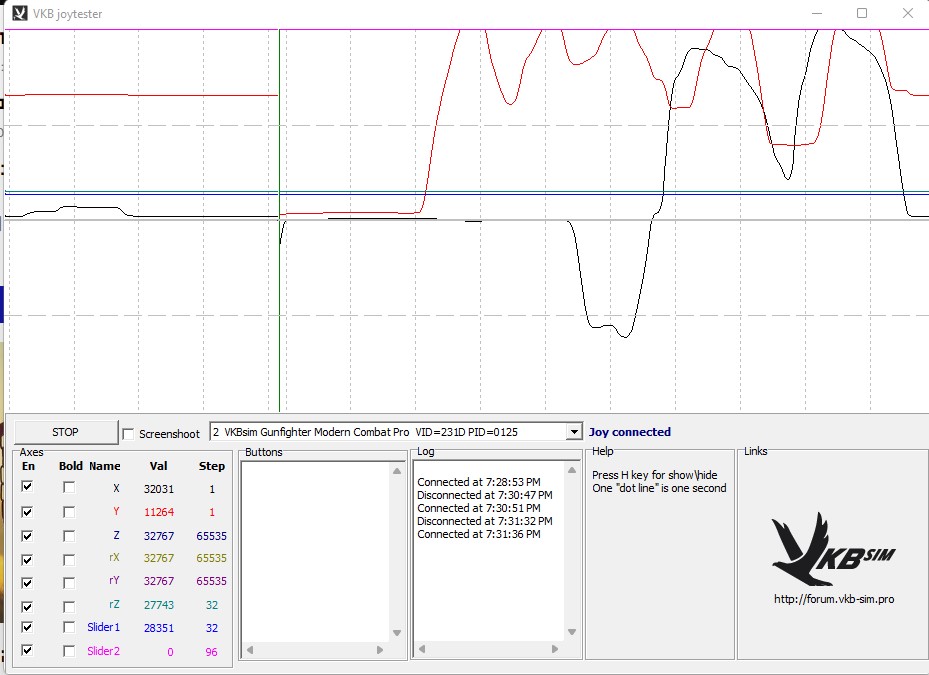 Джойстик все еще продолжает сбиваться по Y оси, скрин после калибровки - в нейтральном положении весит примерно на 0, после нескольких движений он вдруг прыгает на позицию +11264 (это рандомальный номер на осях) и теперь считает что в нейтральном положении он там.