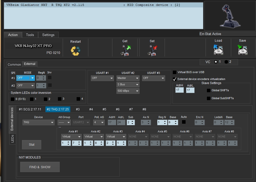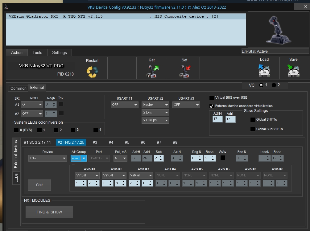 Проблема такова: Имеем Gladiator NXT и THQ соединенные между собой. Ранее они определялись Виндой и VKB config и имели разные имена (VKBsim GladiatorNXT R THQ и VKBsim GladiatorNXT L THQ