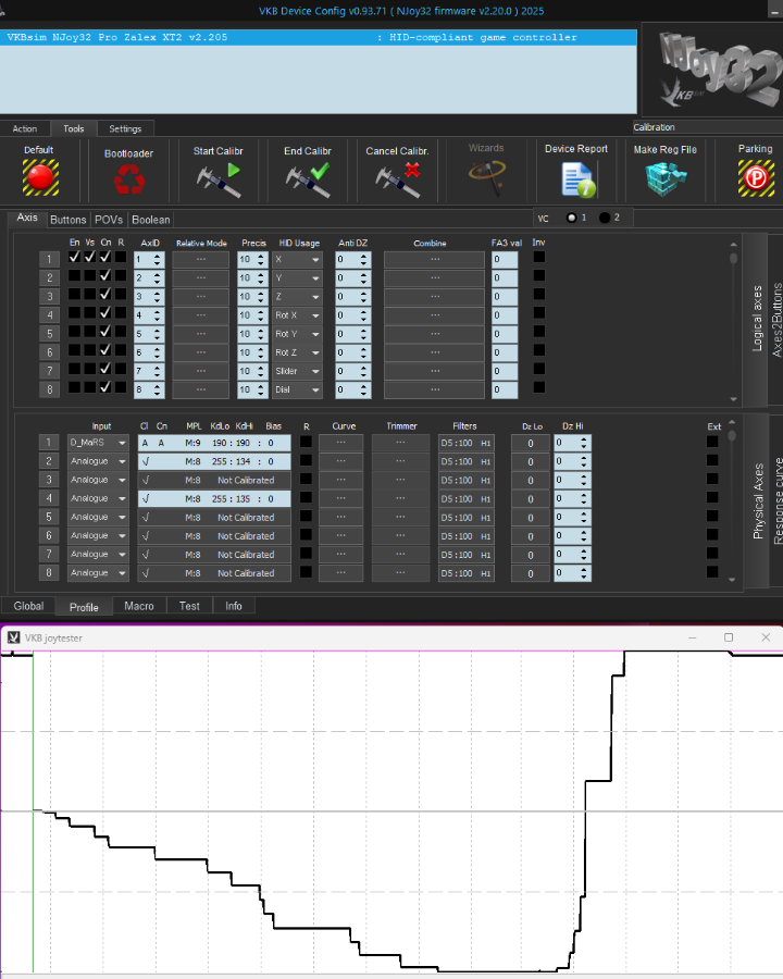 Выставил согласно руководству параметры. Автокалибровка, автоцентрирование, динамический фильтр 33 порог (на скрине будет видно).