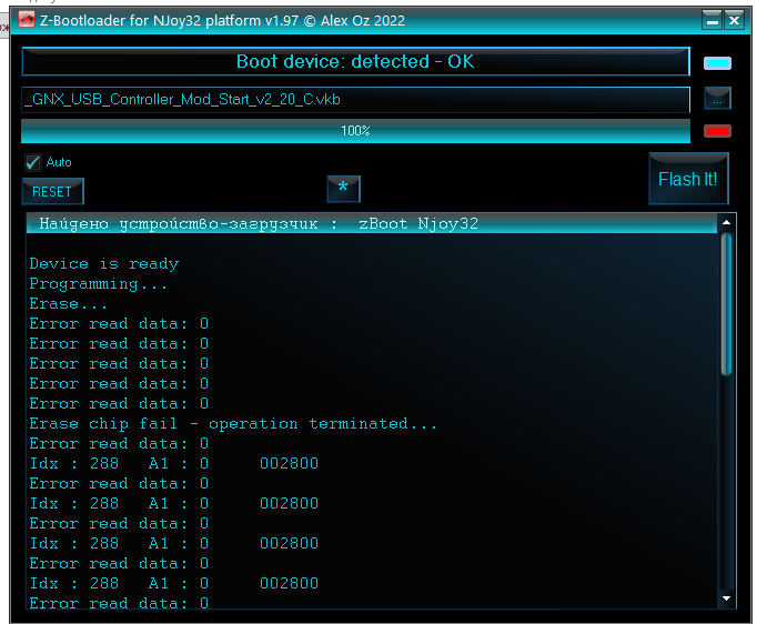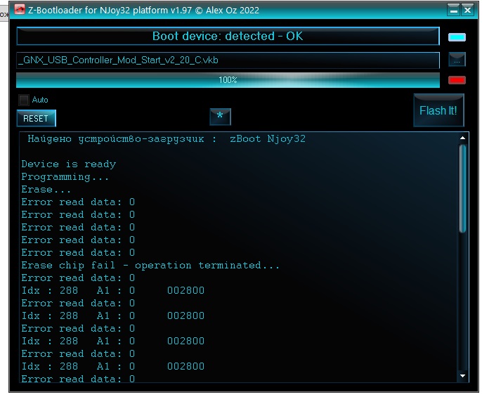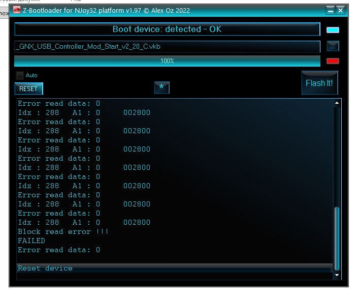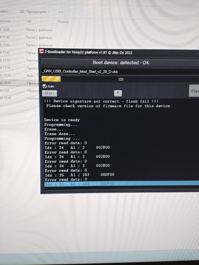 Добрый день. Проблема в следующем. На днях купил на OZON (вдруг это важно) GNX_THQ. Первые пару дней все было хорошо. Но потом он перестал включатся вместе с компьютером, и приходилось вынимать и опять втыкать USB. Затем проблема усугубилась и чтобы он включился приходилось втыкать несколько раз в USB. При не включении он просто один раз моргнет светодиодом и все. Думал дело в прошивке. Нашел для него, надеюсь прошивки _GNX_USB_Controller_Mod_Start_v2_20_D.vkb, которая по описанию должна была исправить проблему. Но этого не произошло. Рядом лежала прошивка _GNX_USB_Controller_v2_20_D. Я решил поставить ее. Но после этого он вообще умер. Дальнейшие попытки вернуть хоть что-то не увенчались успехом - при прошивке вылетают ошибки и что делать я уже не знаю. Фото и скрины все чего можно прилагаю. Ах да, на последнем фото сверху видно сообщение о не поддерживаемой прошивки это я пытался ранние версии загрузить. Он отказался их загружать