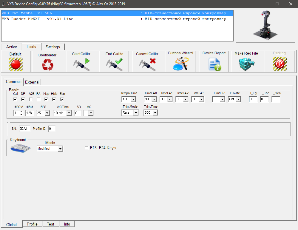 Конфигуратор v0.77.55 установил, прошил прошивкой v1.75A PRO, откалибровал. Теперь не могу найти профиль под Ручку Кабана - кнопки, хатки в джой-тестере некорректно определяются, или не определяются вообще.... Оси норме.
