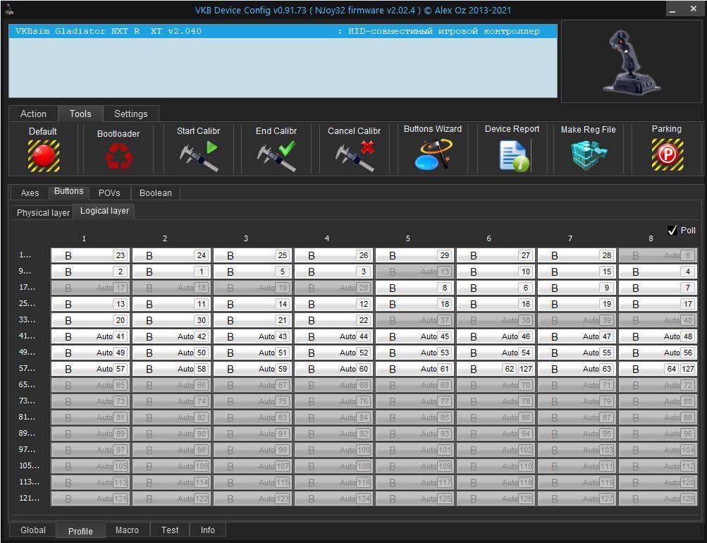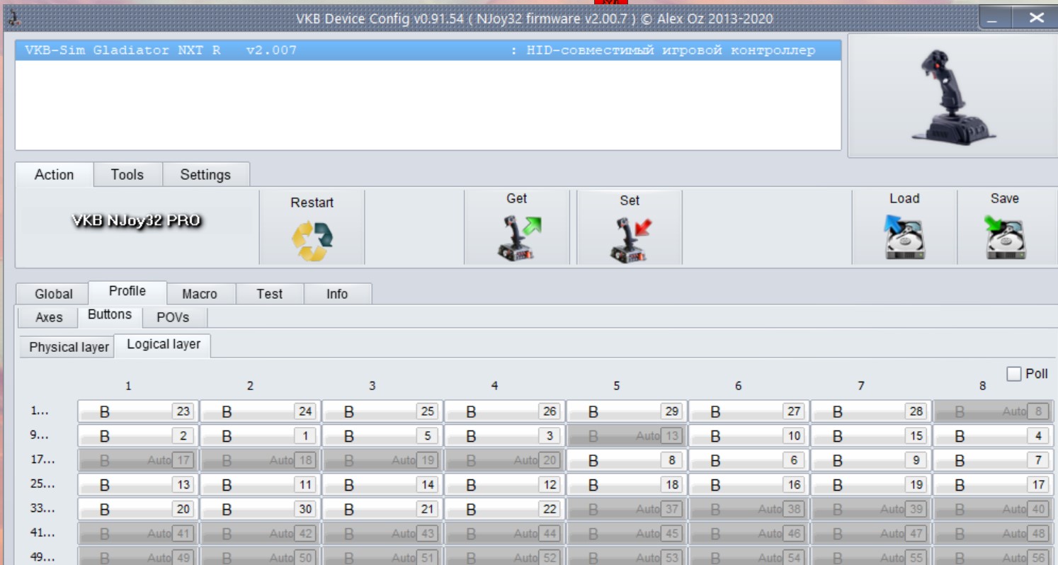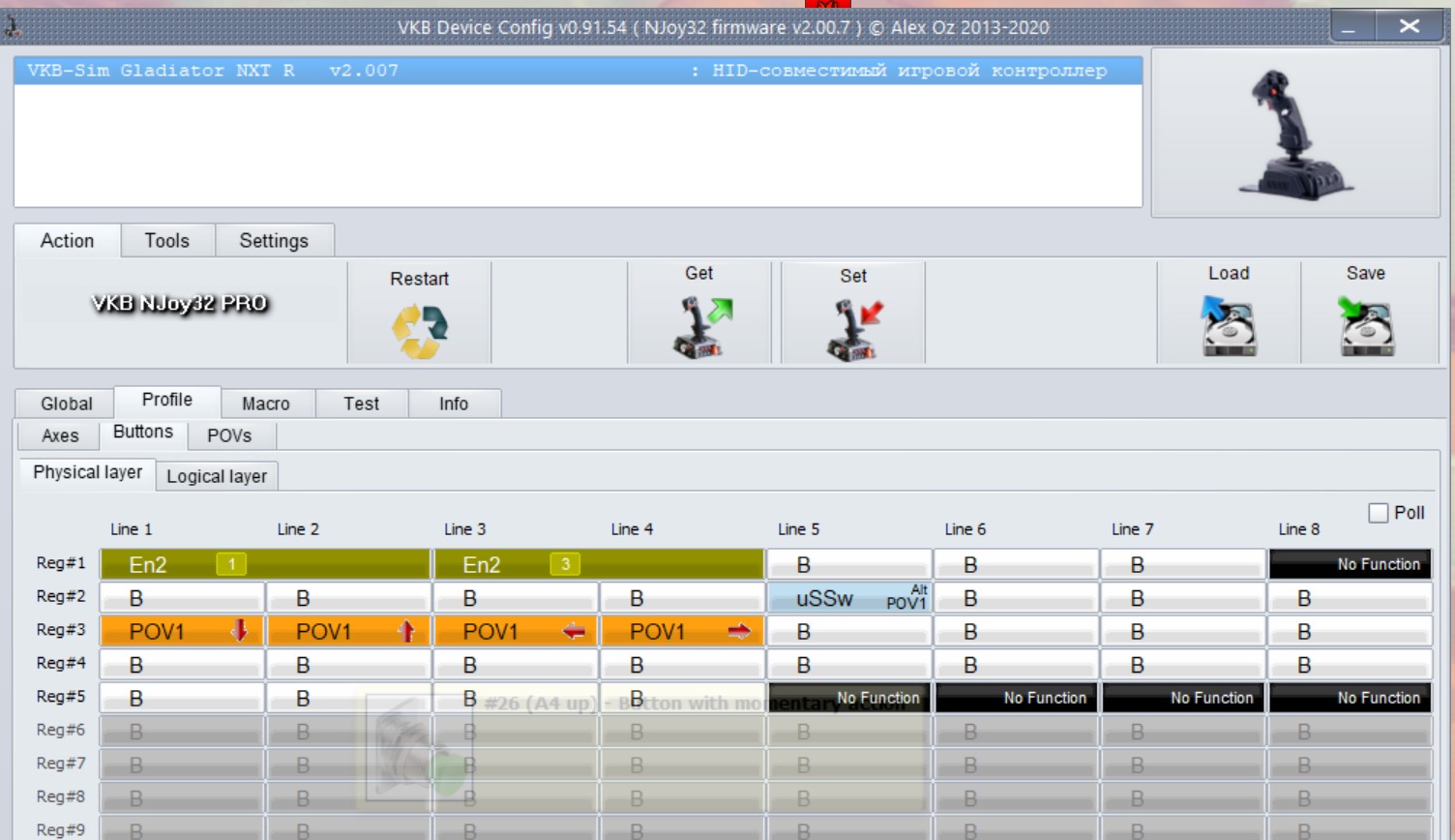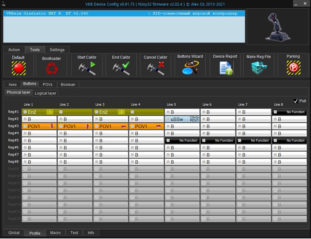 Сбросил на дефолтные настройки, хат А1 становится Pov, но в тесте то он не откликается, почему я и назначал на хат А1 - Battons.