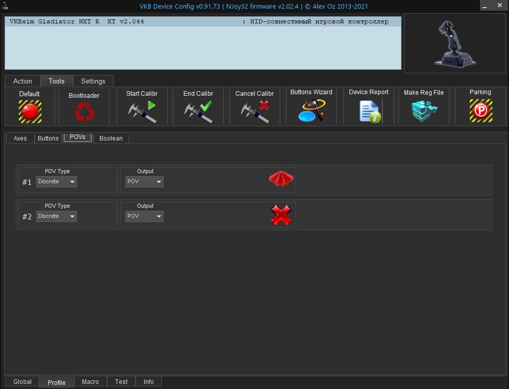 Да, с этой прошивкой всё работает как надо, отклик в Тесте отображается красными стрелками в индикации POV1. Выствка Discrete в POV Type ничего не меняет, работает всё нормально и так