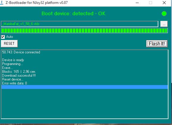 Странная вещь. Ещё раз воткнул джой - вроде bootloader его увидел, но нормально не прошивается: