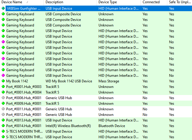 В общем, вот что получилось. Uninstall сделал для всех устройств что были, и есть в системе, переткнул все юсб, всех устройств джоев ВКБ, трекир, и теперь РУС ВКБ виден в проге один, РУДов стало 2, трекиров 3. По ДКС, фантом остался, и если на него ничего не загружать, типа старый профиль любого самоля, то его в папке Input и не виден. Придется лицезреть этот фантом, я незнаю что делать. Если бы к ВКБ джоям шли дрова типа как к Сайтеку. То было бы понятно, что удалить, в какой папке, по какому запросу удалять из реестра, чистить, а так, незнаю. Ладно, если других проблем от фантома не будет, то пес с ним. Спасибо что уделили время и поделились советом.
