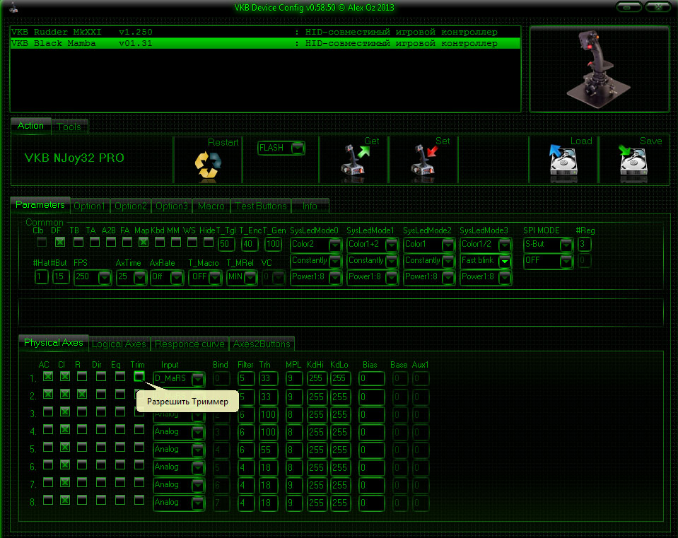 1) запустить конфигуратор (VKBDevCfg-C.exe Версия:v58.50)
