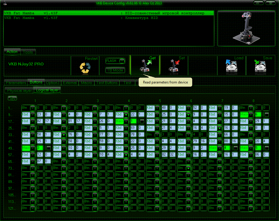 P.S. Из интереса зашел на вкладку макросов Throttlebox'a. Поведение точно такое же. За исключение того, что по нажатию "get" таблица заполняется кнопками джойстика в порядке возрастания.