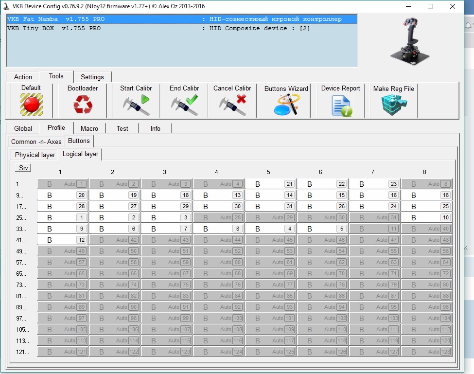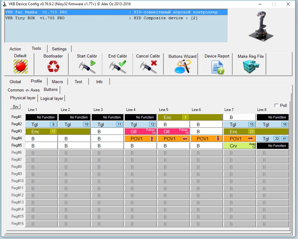 Товарищи, выручайте. Прошивка VKB Fat Mamba v.1.569 PRO, версия конфигуратора VKB Device Config v.0.71.6.5, Windows 7 x64 Proffesional, джой подключен в USB 3.0.Не получается настроить LED индикацию.