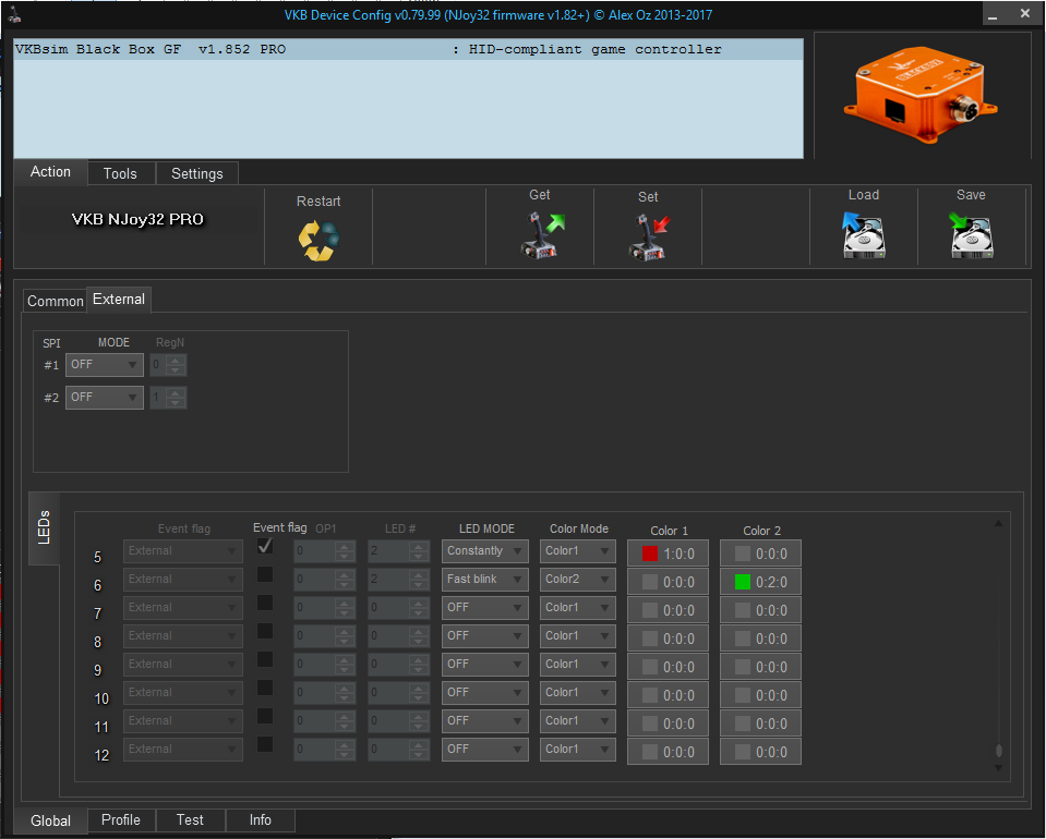 If you mount the warthog grip to the base, right profile was loaded, the led is greed - check the buttons by vkbjoytester http://ftp.vkb-sim.pro/Programms/VKB_JoyTester.zip