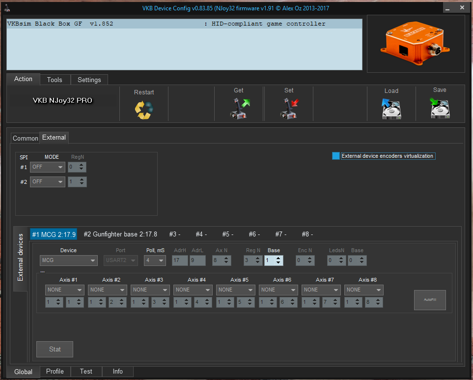 I grabbed the latest firmware I see it updated in the vkb device config but do not see an option for MCG pro list in the external device settings, and Can not see the hats, brake or trigger axis respond anywhere. Is there something else I need to set?