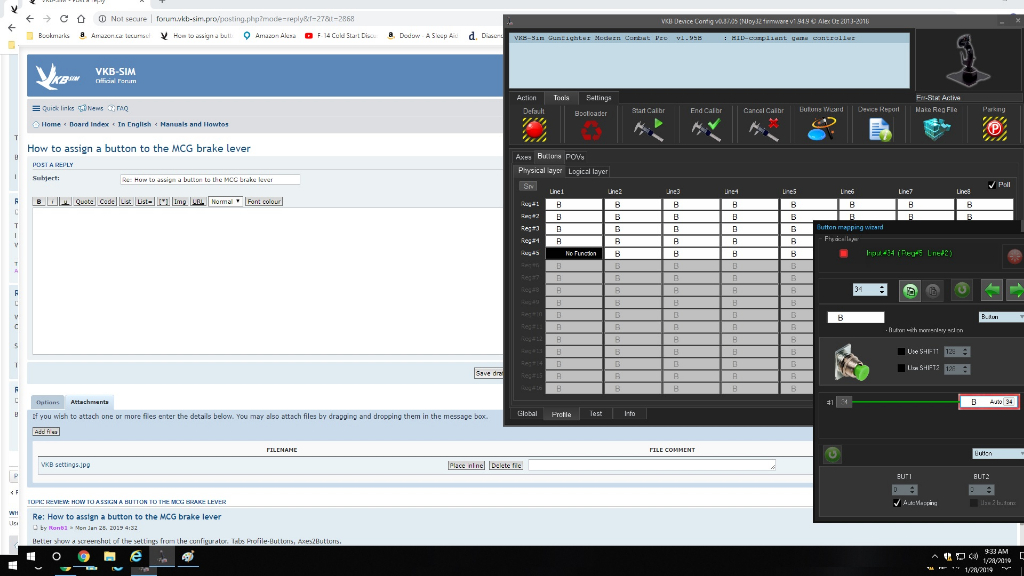 On the button mapping wizard screen, there is a red light on when the lever is not pressed in beside the "Input #34 (reg#5 Line#2) section at the top.