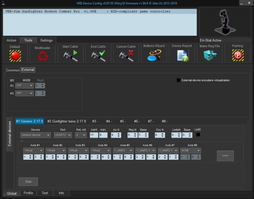 RecklessPrudence wrote:A much easier way of doing this is to use the 'AxesToButton' functionality. Go to axis 8, set it to Edges1, Zone 1, set it to a percentage point that you're comfortable with (ie 25% will press the button when you've pulled the brake lever three-quarters of the way, 0% will press the button only when the lever is pulled completely to the end of its travel), and set it to an unused button. Remember to click the checkbox in the top left to enable the AxesToButton content you customised. Et voila! You have a button! If you are really set on not using the analogue axis of the brake, you can go to the Logical Axes tab and hide the axis. Don't disable it, that will stop your button from working - just hide it from the HID. Tada! You now have a button that activates when you pull the brake, and no analogue axis to confuse your game.