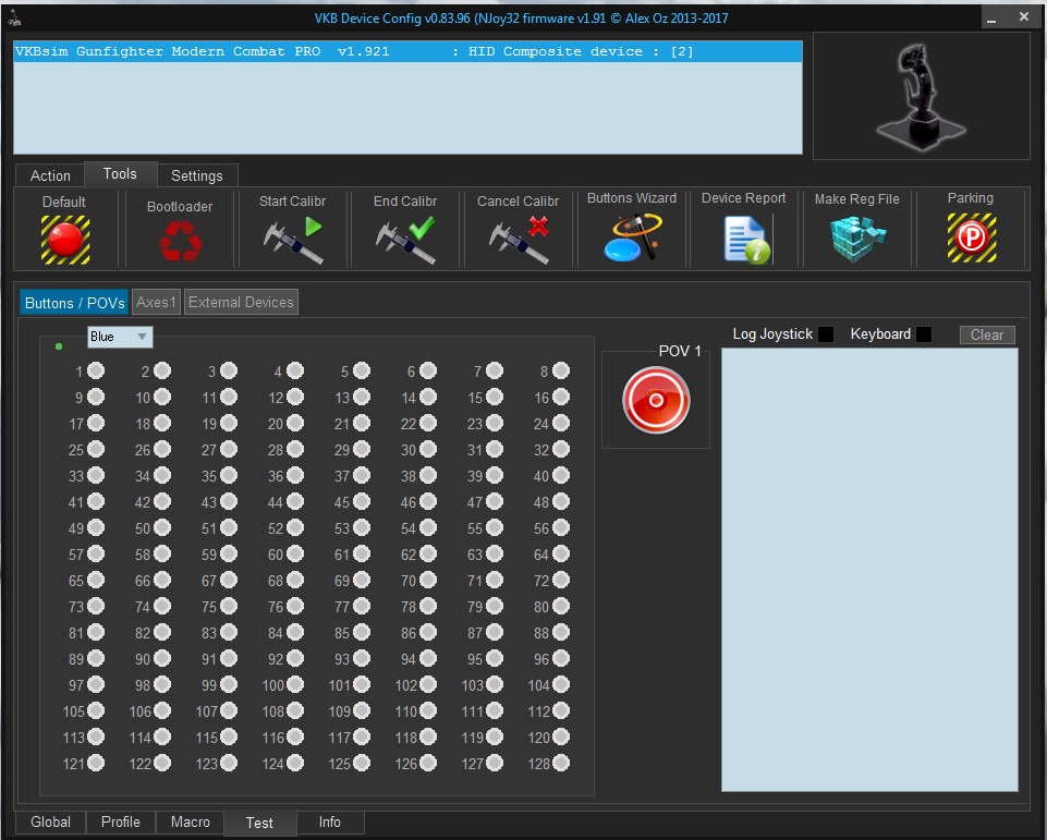 Calibration seemed to work fine, but after I click end calibration some buttons show as pressed in the test tab. They were not shown as pressed before the calibration started. I've tried repeating the steps a few times now always with the same result. I had previously flashed v1.91E a few days ago with no problems. See the image below: