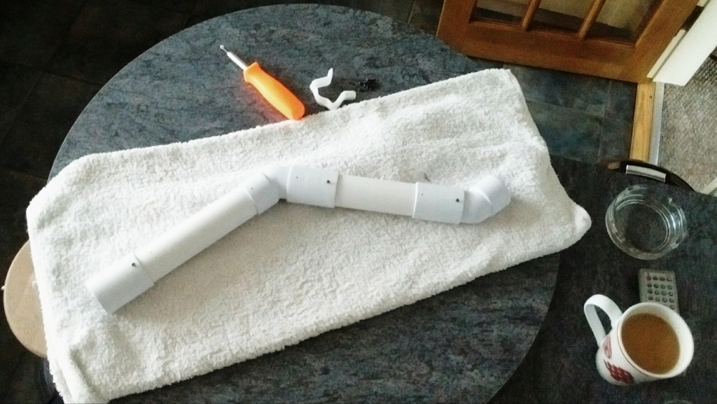 Yes, heavy duty piping with 'FloPlast' connectors and bends. Extremely cheap but the matte black spray paint was my biggest dent in the whole stick budget!