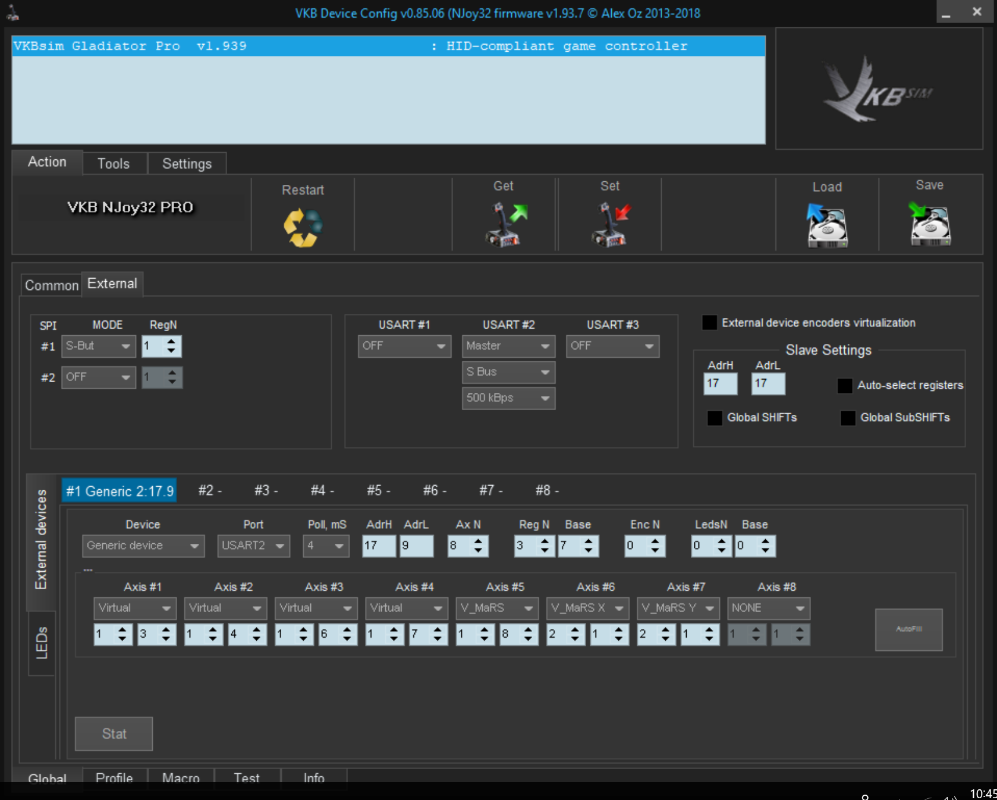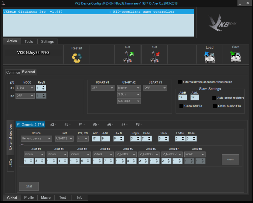 Also set stanard axis bindings in external device,