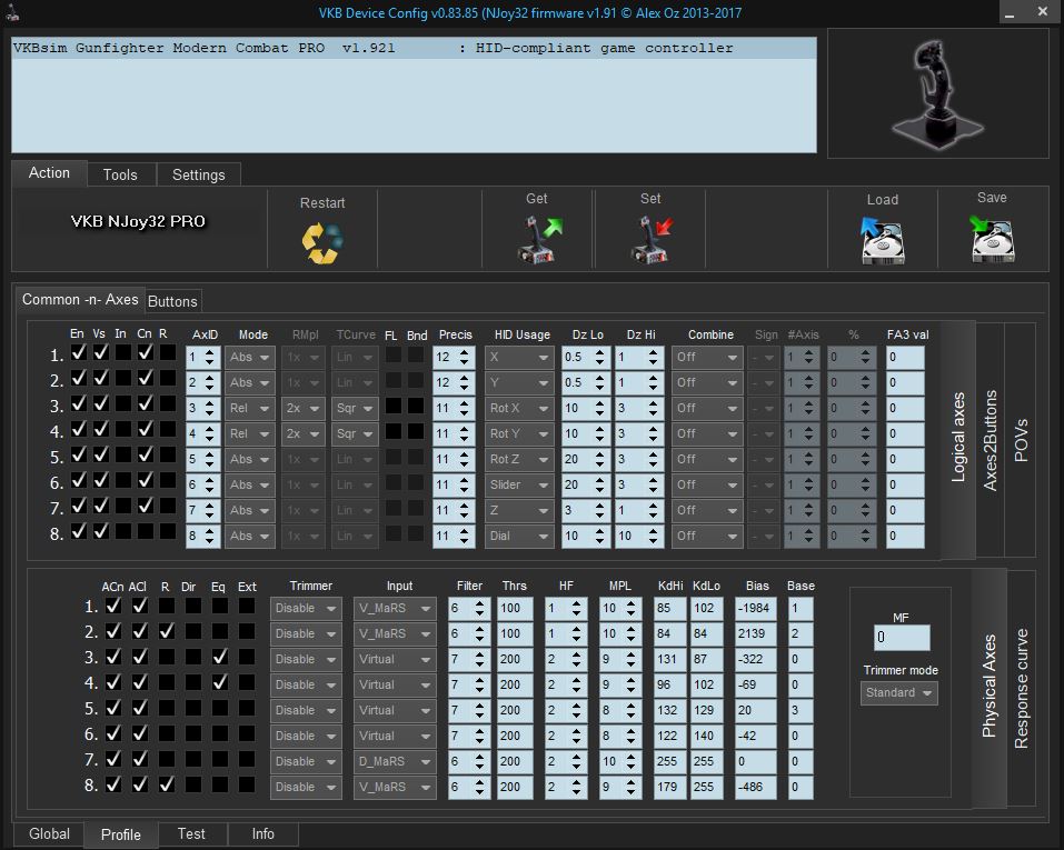 4. if there are unused axes (for example, TRudder is not directly connected to the BlackBox Gunfighter - this is the 7th physical axis), then in the Input, set Virtual for them (now there is D-Mars)