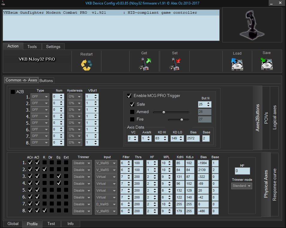 4. if there are unused axes (for example, TRudder is not directly connected to the BlackBox Gunfighter - this is the 7th physical axis), then in the Input, set Virtual for them (now there is D-Mars)
