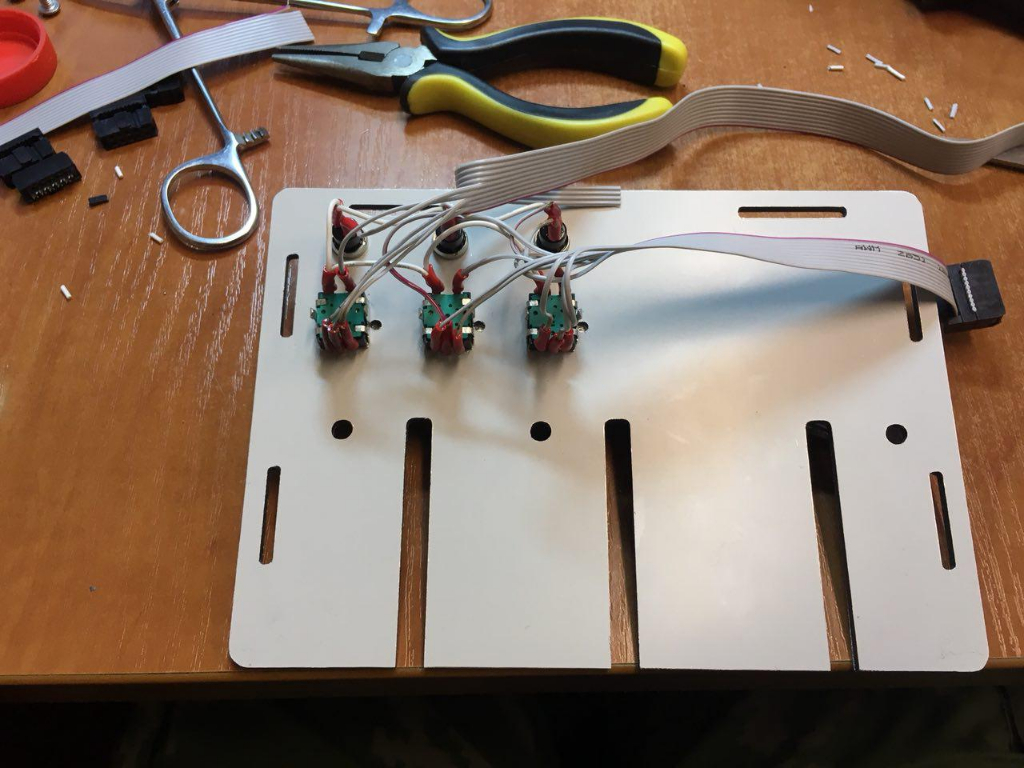 Начал запаивать контролы с передней панели. Удалось найти плату расширения на 16 кнопок, ее и использую:
