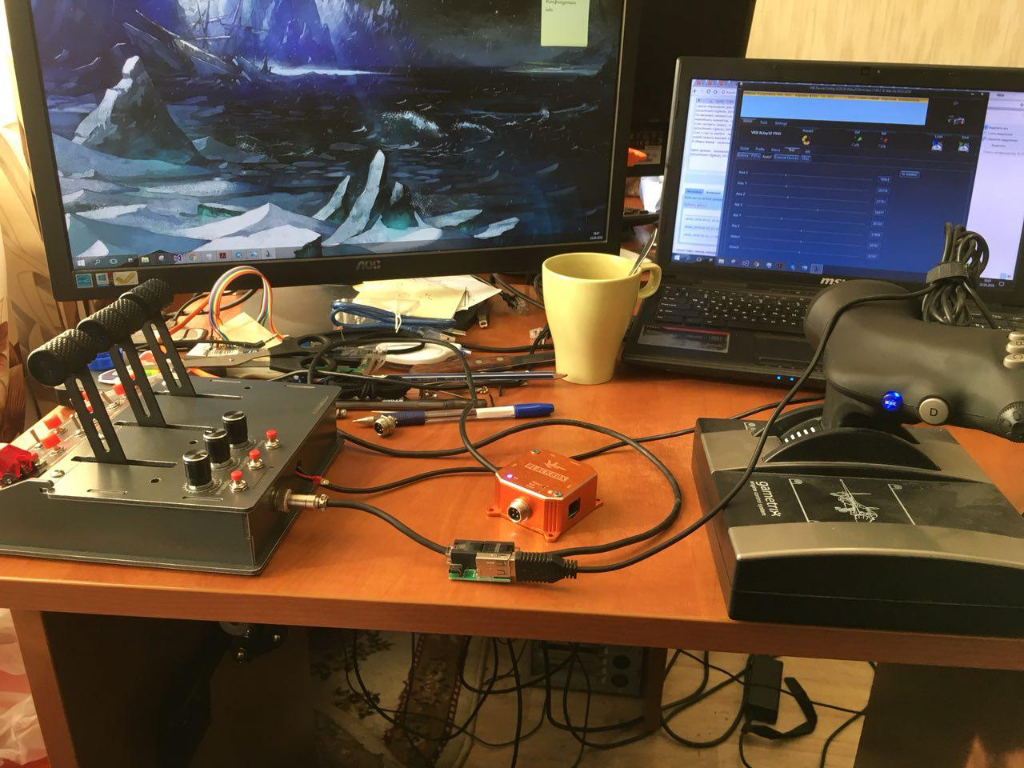 Вот так выглядит панель, энкодеры можно крутить не убирая руки с ручек (делалось именно под себя, мне удобно) кнопки также доступны. На них будут находятся функции выбора двигателей и шифтов, так что они не нужны с большой оперативность.