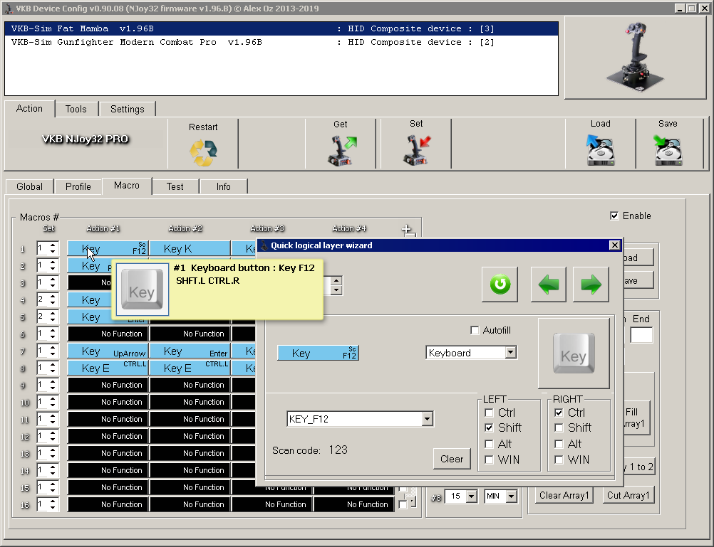 I'm having trouble trying to create a repeating macro through the VKBDevCfg. I can't even get as far as the macro even activating at all.