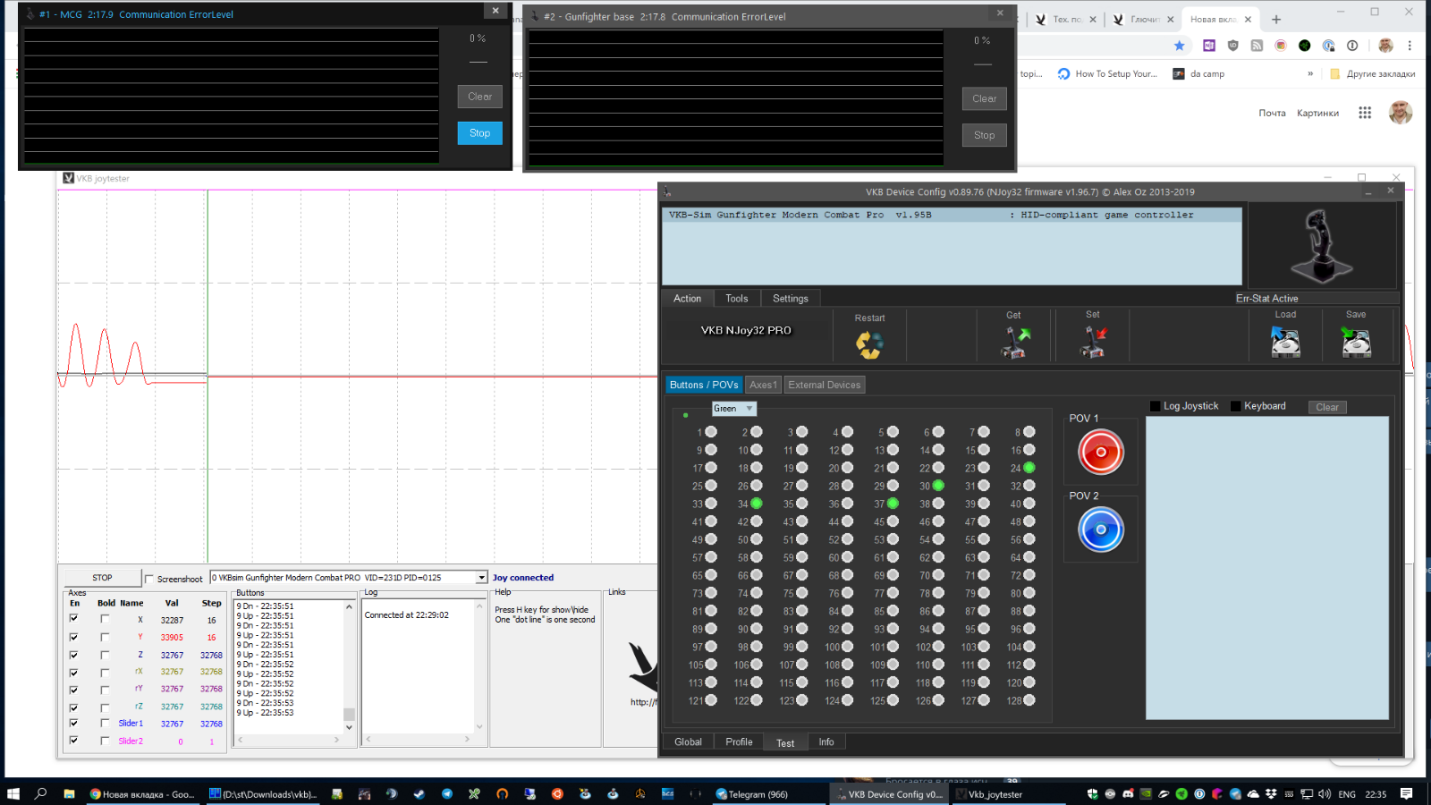 Прикладываю скриншот, на котором видно передергивание кнопки 9. При этом срабатывание нажатия самой хатки под большой палец чистое и четкое, эти срабатывания тоже отображаются.