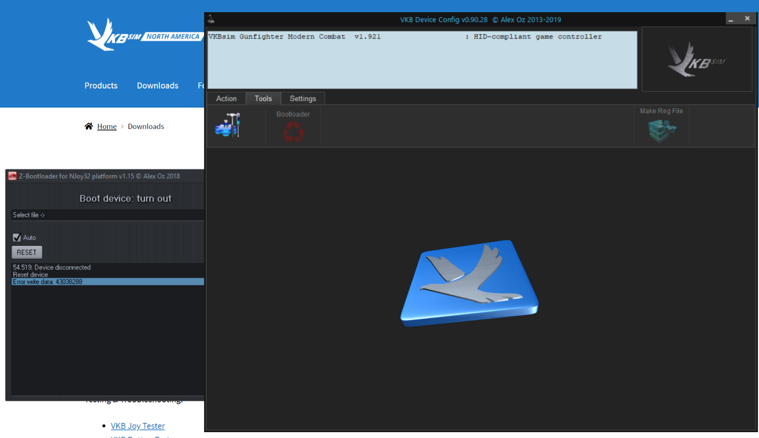 1) Your ZBootloader is too old. Please update to the new http://ftp.vkb-sim.pro/Programms/ZBootl ... 0v1_13.zip