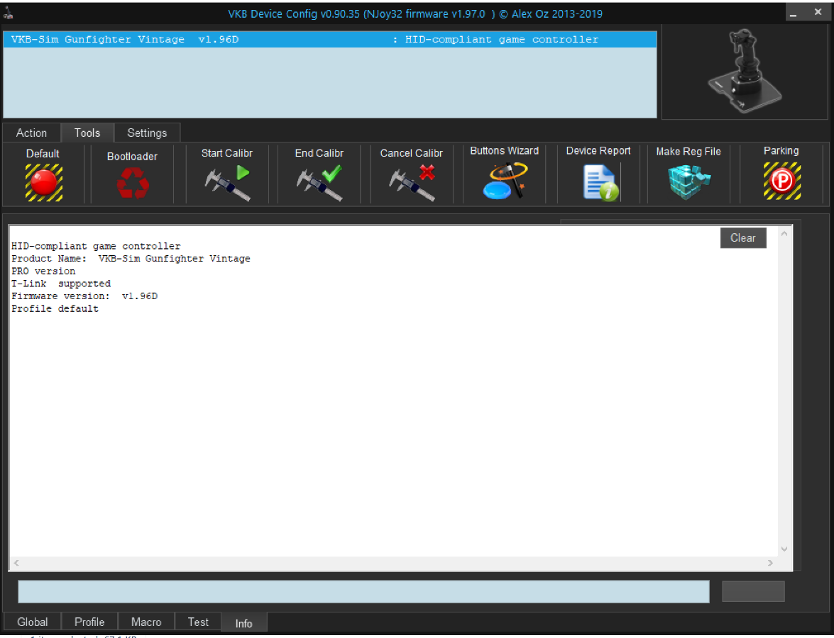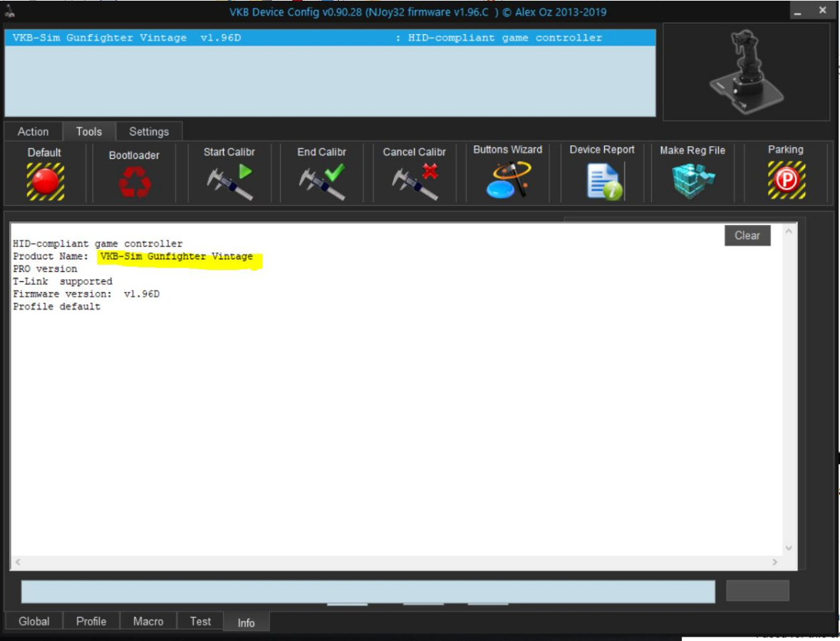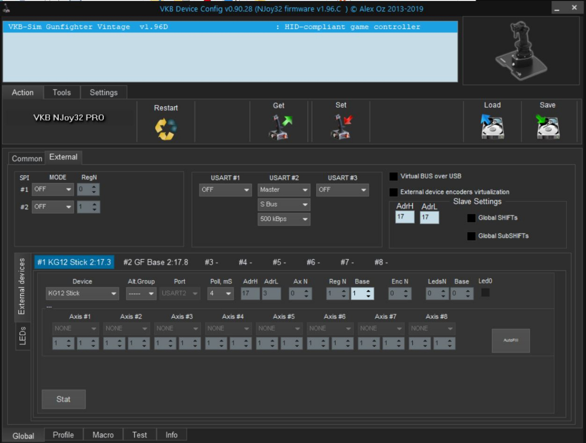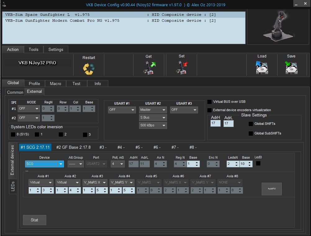 I followed the step to the letter and got the same results (error). I noticed that in the video in the VKBDevCfg software the stick was labeled VKB-Sim Space Gunfighter L v1.96D. Mine before the attempted flash is VKB-Sim Gunfighter Vintage v1.96D. Anyways I make it to 2:13 in the video then I get the error. I'm using the newest software from the download page and I'm at my wit's end. The KG12 works as intended but I can't flash the box to use my SCG-L grip with the base and black box that came with the KG12.