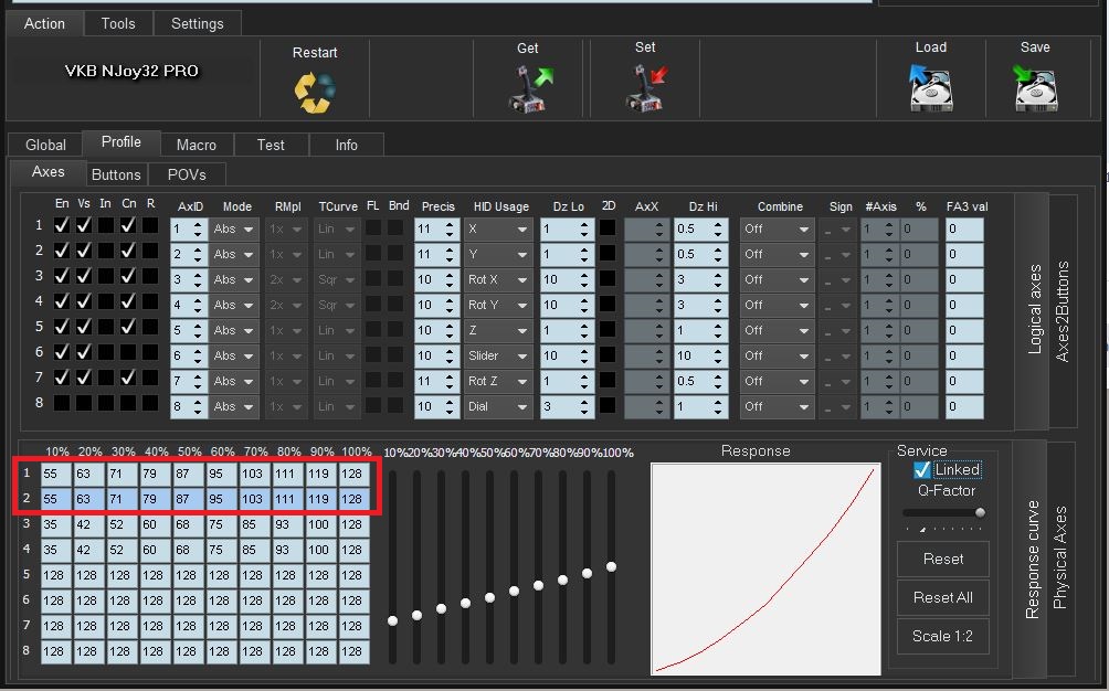 Weegie wrote:[...] so the physical axes (or throw on the stick) is at 100% but the virtual axes as seen by the computer is less, 50 or 25% for example