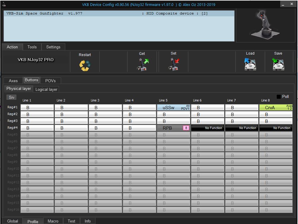 И для общих настроек - если не подключены педали, то отключаем 7 ось (En, Vs, а в физических для неё Input=virtual).