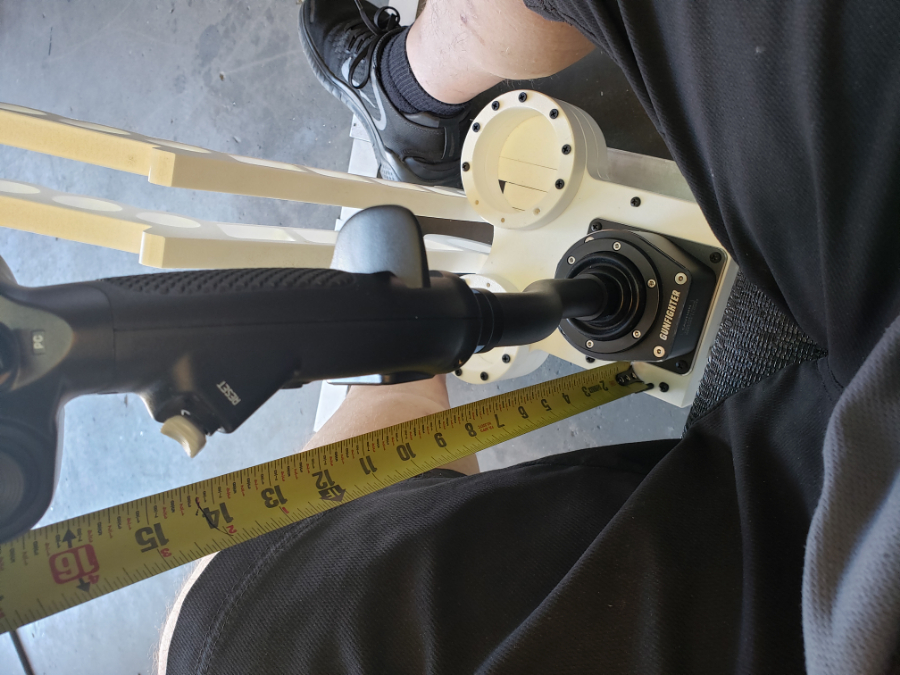 Where do you install the base of the vkb stick with the 8" curved extension on? I don't have one (yet) but I can make a guestimation based on the height measurements provided. On a table, it would be above my head. On the floor, the trigger would barely pass the seat of my chair.