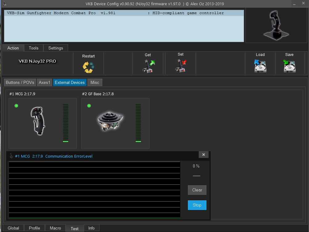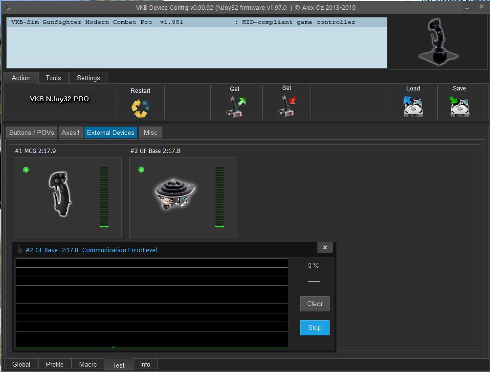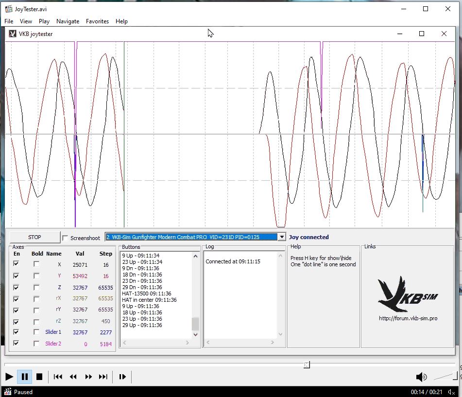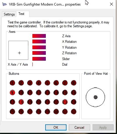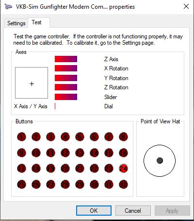 I was able to get it in a small video in the VKBDefConfig screen and also of the Windows Game Controllers screen. The last one shows the axis movement together with the flashing buttons.